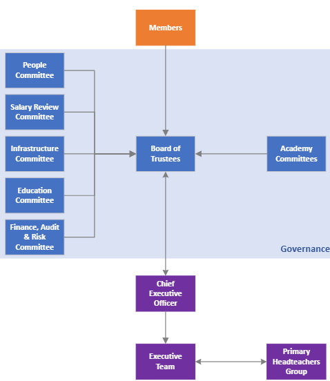 The Board of Trustees delegate a significant amount of the work of the Trust to functional committees of the Board and to Academy Committees, whose primary functions are to carry forward the vision, values, ethos and strategic direction of the school, to hold senior leaders to account for the educational performance of the school, and to ensure the voices of stakeholders are heard. The Trustees recognise the significant role that local governance plays in raising standards and improving outcomes, and are committed to working with governors and teams in the schools to unlock our potential across the Trust.