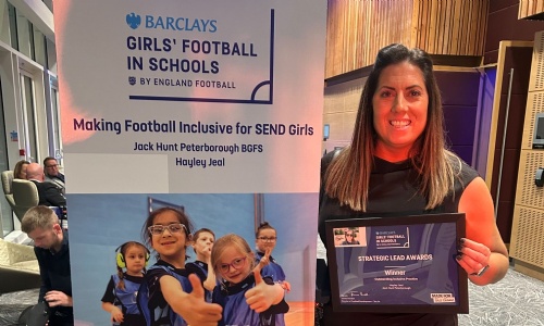 Ms Hayley Jeal, Curriculum Area Leader for PE and Director of community Sport at Jack Hunt Academy received a National Award for Championing Inclusive Football for Girls with SEND.